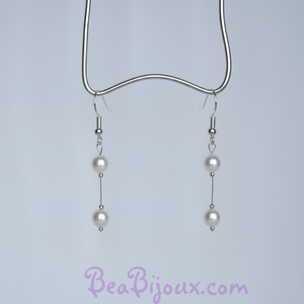 Boucles d'Oreilles Mariage Pendantes Perles Nacrées Blanches Simples (4,5 cm)