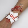 Matériaux : Fils d'aluminium rouge et argent, fleur en satin blanc, inscription "OUI" pailletée.