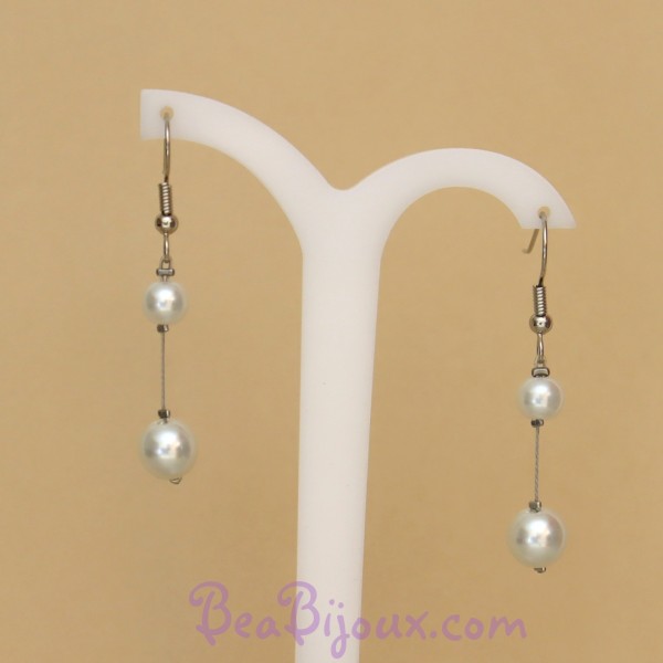 Matériaux : Perles en verre nacré blanc éclatant, montures hameçon en acier inoxydable (anti-allergique).
