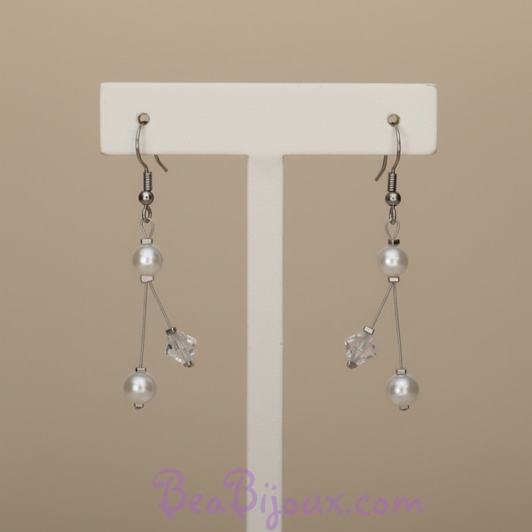 Mots-clés : boucles d'oreilles mariage perles blanches cristal, perles nacrées longues 5 cm, acier inoxydable, bijou de mariée argenté, boucles d'oreilles personnalisable, bijoux mariage