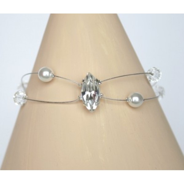 Apportez éclat et raffinement à votre tenue de mariage avec ce bracelet élégant orné d’une navette en strass étincelante.