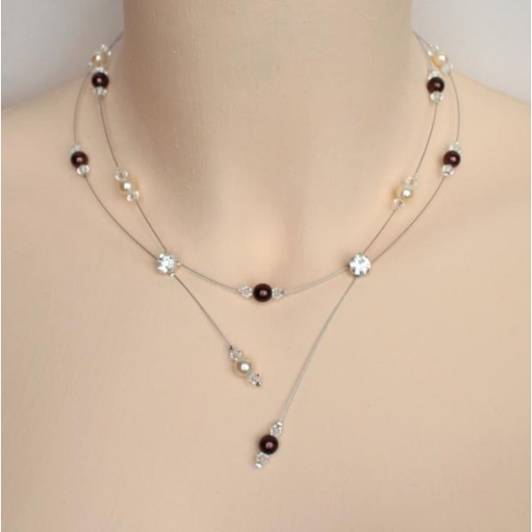 Collier mariage ivoire chocolat cristal strass CO1247A