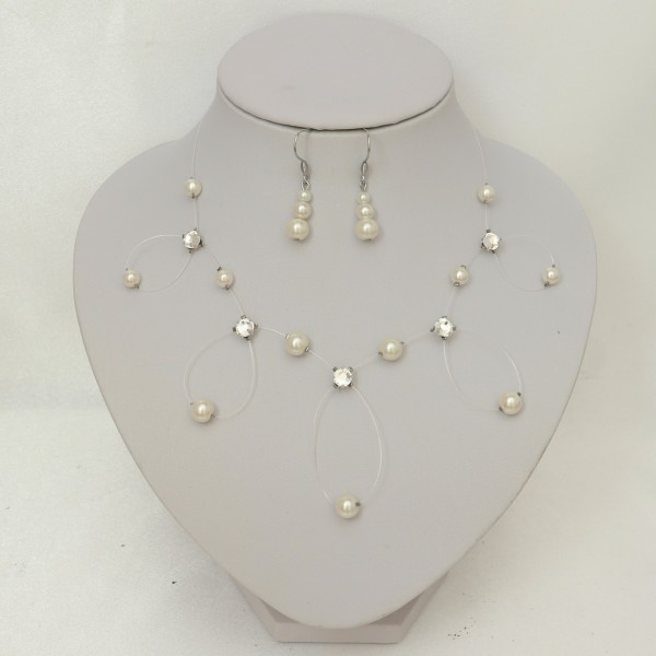 Ce collier de mariage élégant est réalisé sur fil nylon transparent, créant un effet aérien et sophistiqué.